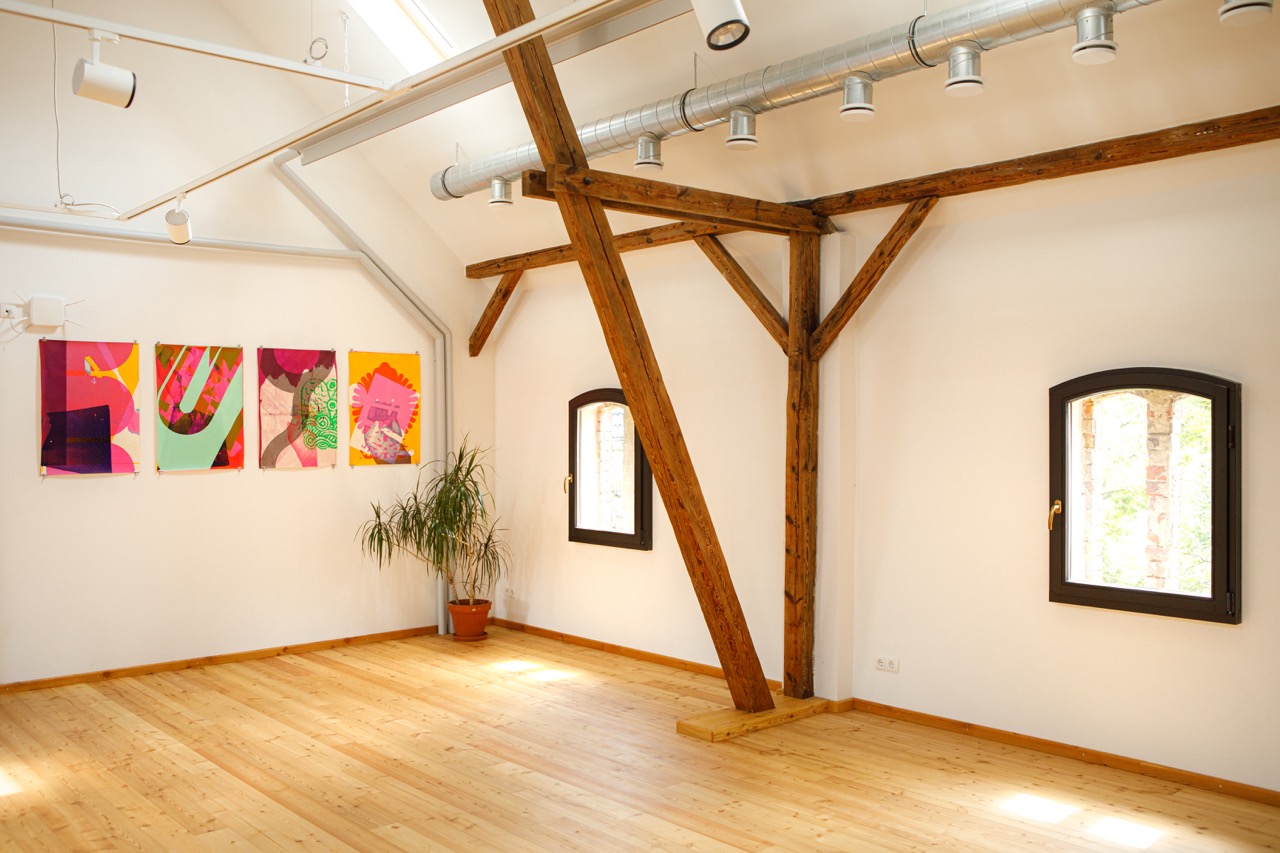 Der 100 qm große Raum schafft eine ideale Atmosphäre für Seminare, Tagungen oder Workshops. Viel natürliches Licht, Holzfußboden und hohen Decken machen ihn vielseitig nutzbar. Voll bestuhlt bietet er Platz für 50 Personen.