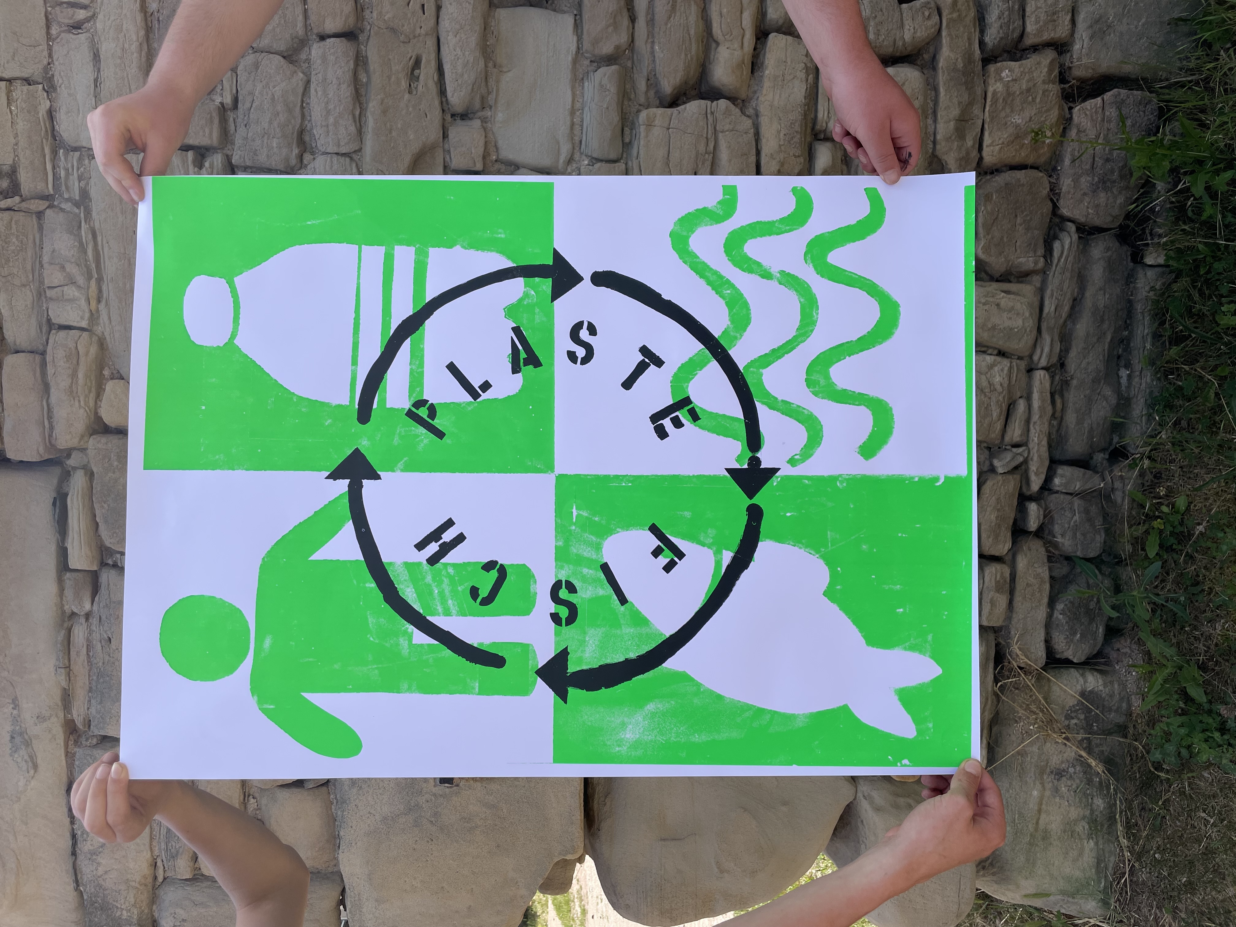 Im Sommer 2023 wurden mit verschiedenen Jugendgruppen und Schulklassen Siebdruckworkshops auf Posa durchgeführt. Begleitet von GrafikerInnen, KünstlerInnen und Kreativen lernten die Jugendlichen die Grundlagen visueller Kommunikation und probierten sich kreativ darin aus. Sie schärften ihre Ideen, entwickelten Inhalte und entwarfen daraus Motive für Plakate, die sie mithilfe von Siebdruck, Stempeln und Schablonen produzierten. Bei allen Schritten stand immer der Spaß am Entwerfen und Produzieren im Vordergrund. So sollen die Jugendlichen auch über das Projekt hinaus für kreatives Handwerk und im speziellen das Siebdrucken begeistert werden.