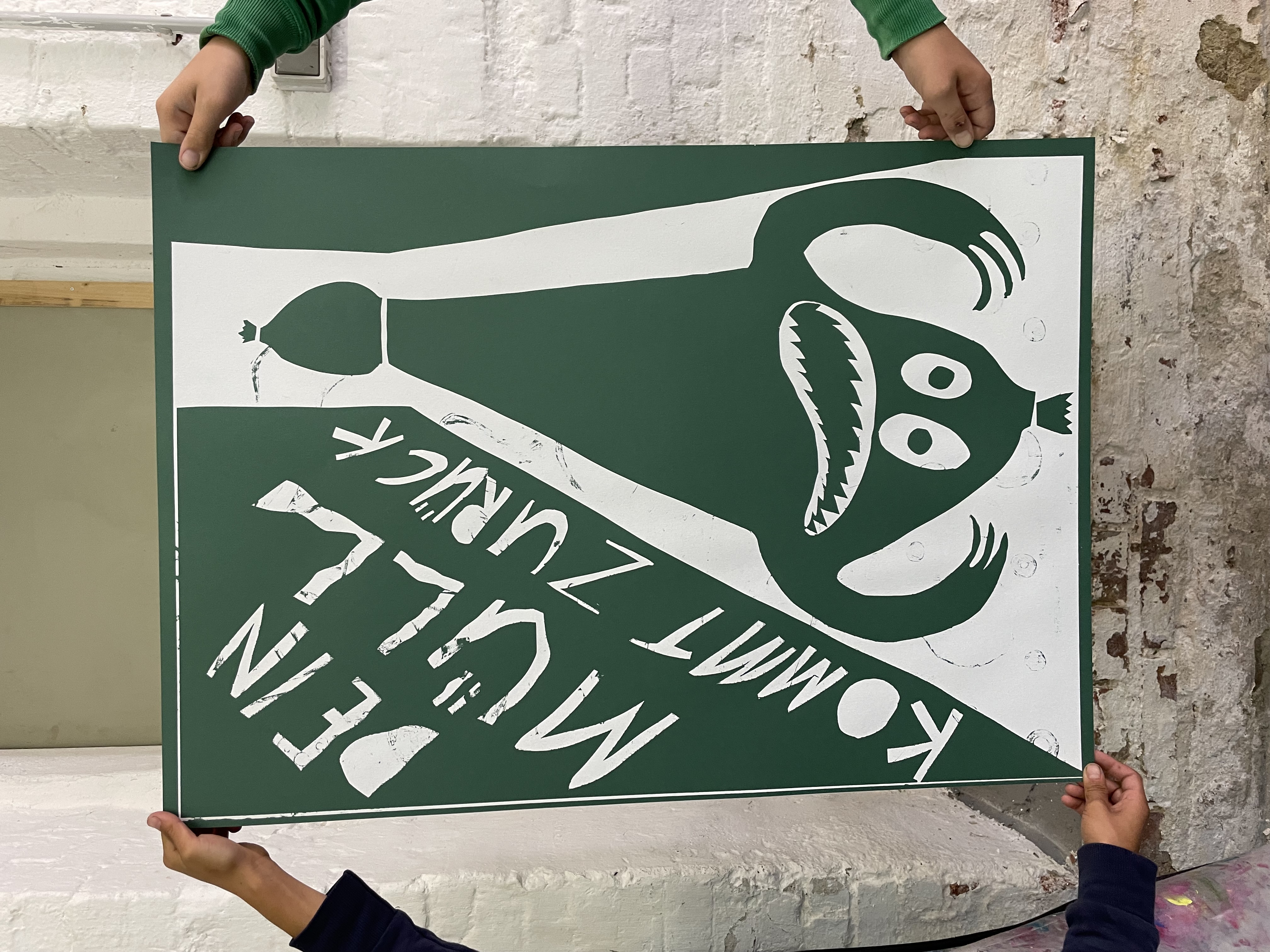 Begleitet Von Grafiker:innen, Künstler:innen und Kreativen mit pädagogischer Erfahrung lernten die Jugendlichen die Grundlagen visueller Kommunikation und probierten sich kreativ darin aus. Sie schärften ihre Ideen, entwickelten Inhalte und entwarfen daraus Motive für Plakate, die sie mithilfe von Siebdruck, Stempeln und Schablonen produzieren. Die Plakate wurden und werden an ausgewählten Orten im öffentlichen Stadtbild plakatiert und machen so die jungen Positionen sichtbar.